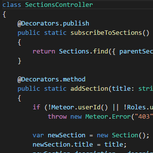 Improve way of working with TypeScript in MeteorJs by using TypeScript decorators.